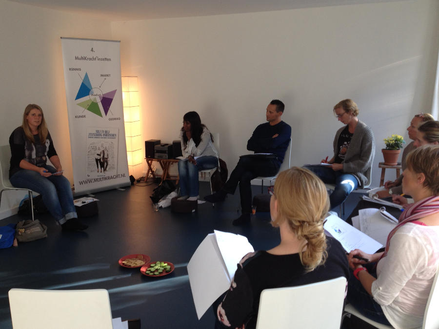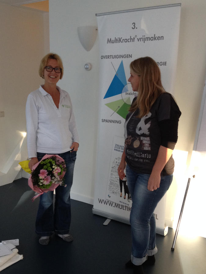 Marja nam ons mee op reis aan de hand van het MultiKracht-principe. Aan de hand van een overzichtelijke kaart konden we onderzoeken wat er in onze rugzak zit. Opmerking: “rugzak” wordt ook nogal eens gebruikt als metafoor voor wat je in de weg zit, voor waar je last van hebt. Hier wordt met “rugzak” juist bedoeld wat je in huis hebt aan kwaliteiten. Want wat zit er allemaal in die rugzak?